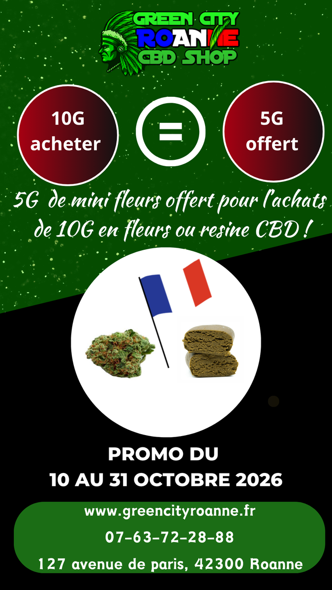 5g offert pour l'achat de 10g en fleurs ou resine de CBD !