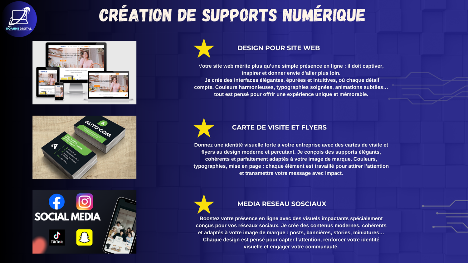 Chaque visuel est conçu sur mesure afin de refléter votre identité, renforcer votre image de marque et capter l’attention de vos clients.
