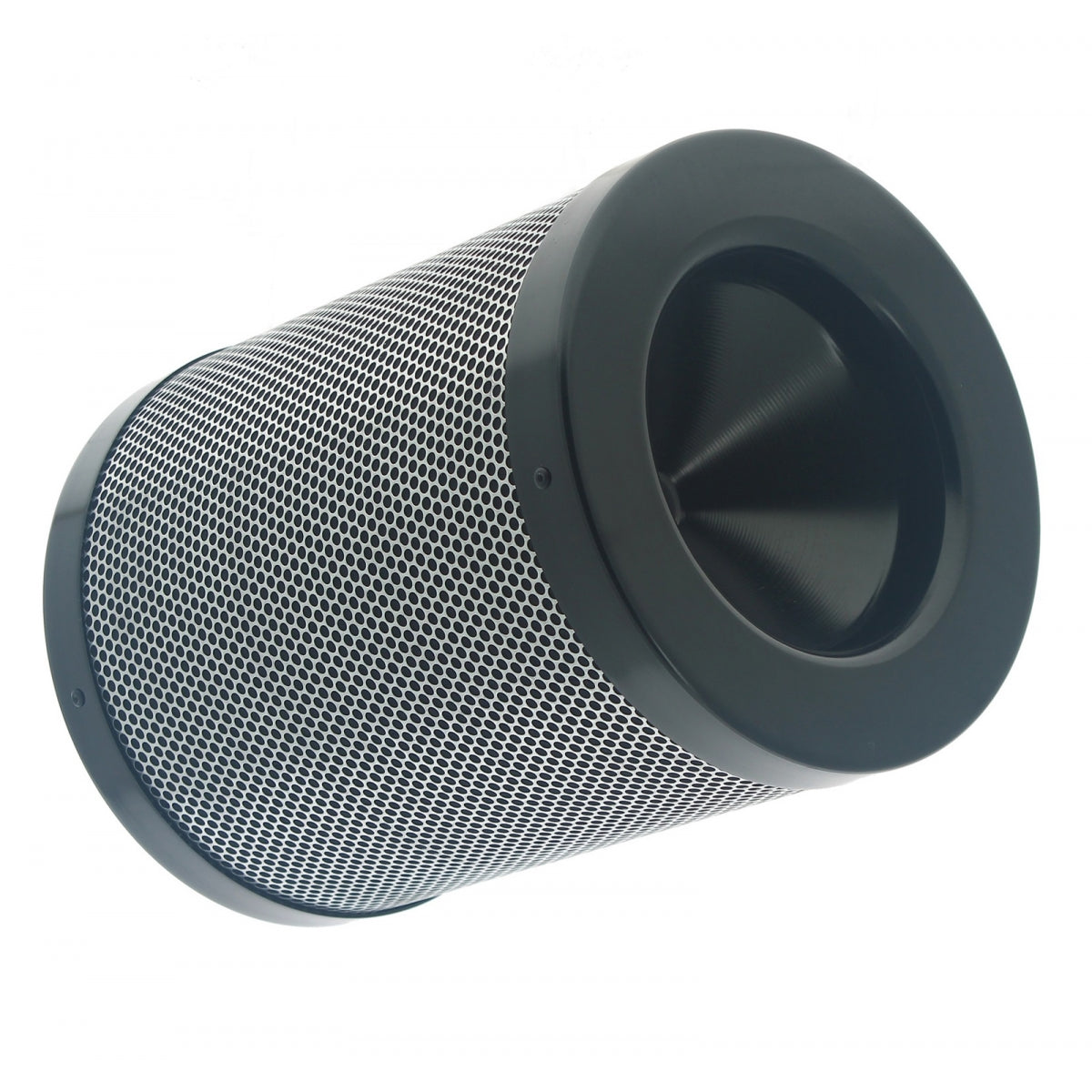 Le filtre à charbon Rodwin se compose d'un cylindre en acier recouvert d'un pré-filtre en coton lavable qui permet de retenir les grosses particules en suspension. La couche de charbon vierge Australien se trouve entre un maillage en acier intérieur et extérieur ouvert à 53% permettant ainsi une excellente circulation de l'air. Son fond conique permet à l'air de circuler puissamment jusqu'au bout du filtre en créant une sorte de tourbillon dynamique contrairement aux filtres standards à fond plat.